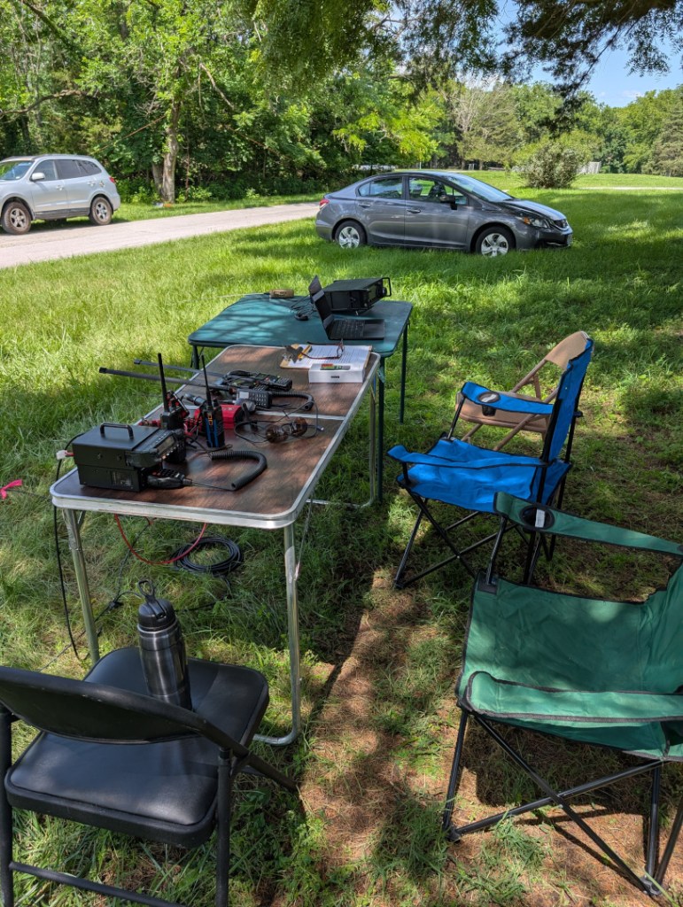 CMRA met at the Rock Bridge State Park, south of the Ranger Station at the top of the hill. We ran as a 3A club, meaning we had 3 stations on the air, running on alternate power sources using temporary, portable setups. Our particular setup included: